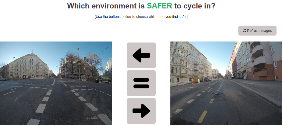 This study develops a new approach to measure how people perceive cycling safety in urban environments. Instead of relying on traditional surveys, participants were shown pairs of real-world street images and asked to select which environment appeared safer for cycling. The responses were used to train a siamese convolutional neural network capable of learning safety preferences directly from images, including situations where participants perceived both environments as equally safe. The resulting model can predict human perceptions of cycling safety and enables scalable, continuous assessments of street environments, supporting more effective interventions to improve cycling conditions in cities.